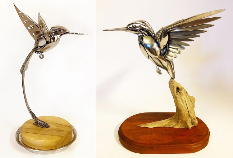 Bằng cách sử dụng các vật dụng trên bàn ăn và các đồ vật kim loại khác, nghệ sĩ gốc Charleston (trước đây) đã hàn các tác phẩm điêu khắc về chim, côn trùng và các động vật nhỏ khác trông giống như thật. Ông gắn các tác phẩm điêu khắc bằng kim loại trên các mảnh gỗ lũa hoặc các mảng nhẵn — nhiều trong số chúng được làm thủ công bởi người bạn của ông là Jacob Kent — nhằm mục đích tạo sự tương phản giữa kim loại sáng với vật liệu sần sùi tự nhiên. Những chiếc lớn thìa lớn sẽ trở thành những cái chân sau cơ bắp, tay cầm nhọn bè ra như cánh quạt được dùng để làm thành cánh và ngạnh nĩa cuộn tròn quanh cành giống như những chiếc móng vuốt trong tập hợp động vật hoang dã của Matt Wilson.