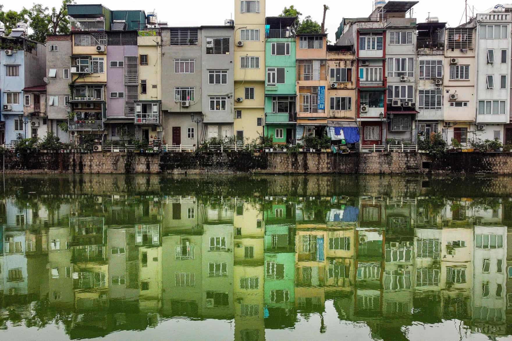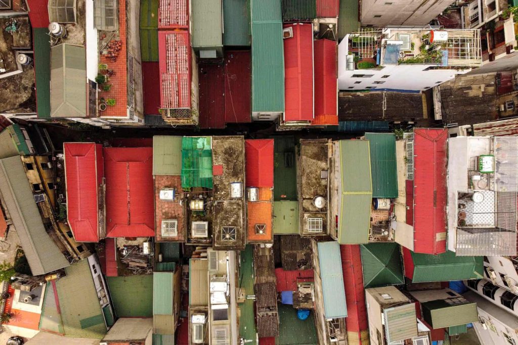 “Cao, mỏng và nhiều màu sắc rực rỡ, hình ảnh những căn “nhà ống” ở Hà Nội mọc san sát và nổi bật trên một vài tuyến phố Hà Nội – thủ đô của Việt Nam, nơi không gian sống ngày càng trở nên chật hẹp.” – nhiếp ảnh gia Manan Vatsyayana chia sẻ.