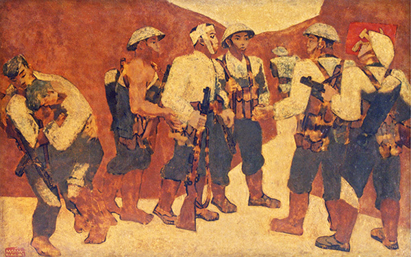 Nếu sơn dầu lối mô tả hiện thực đó đã rất khó, với chất liệu sơn mài, phải vẽ lên rồi mài ra còn khó hơn thế vạn lần. Bức tranh này có thể xem là một bước đệm quan trọng cho việc ra đời tác phẩm quan trọng bậc nhất của nền hội họa cách mạng Việt Nam năm 1963 “Kết nạp Đảng ở Điện Biên Phủ”. Những người lính được kết nạp trong chiến hào được mô tả với dáng vẻ chân thực nhất nhưng cũng khái quát nhất, ghi nhận một thành tựu, một đỉnh cao của hội họa sơn mài Việt Nam.