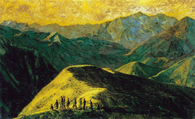 Đến năm 1955, với “Nhớ một chiều Tây Bắc” của Phan Kế An, dường như màu lục đã tạo nên những chuyển sắc vô cùng tinh tế trên những dãy núi điệp trùng. Sắc vàng cũng không còn có tính trang trí nữa mà rực lên màu nắng lan khắp mặt tranh tạo nên nét thi vị và lạc quan đầy tinh thần cách mạng cả trên trên tranh lẫn trong kỹ thuật tạo hình.