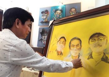 Bức tranh do họa sĩ Lê Sa Long vẽ trên cảm nhận của mình về hình ảnh Phó Tổng thống ...
