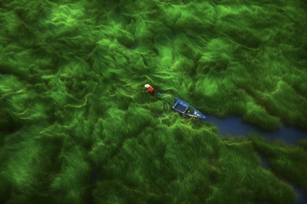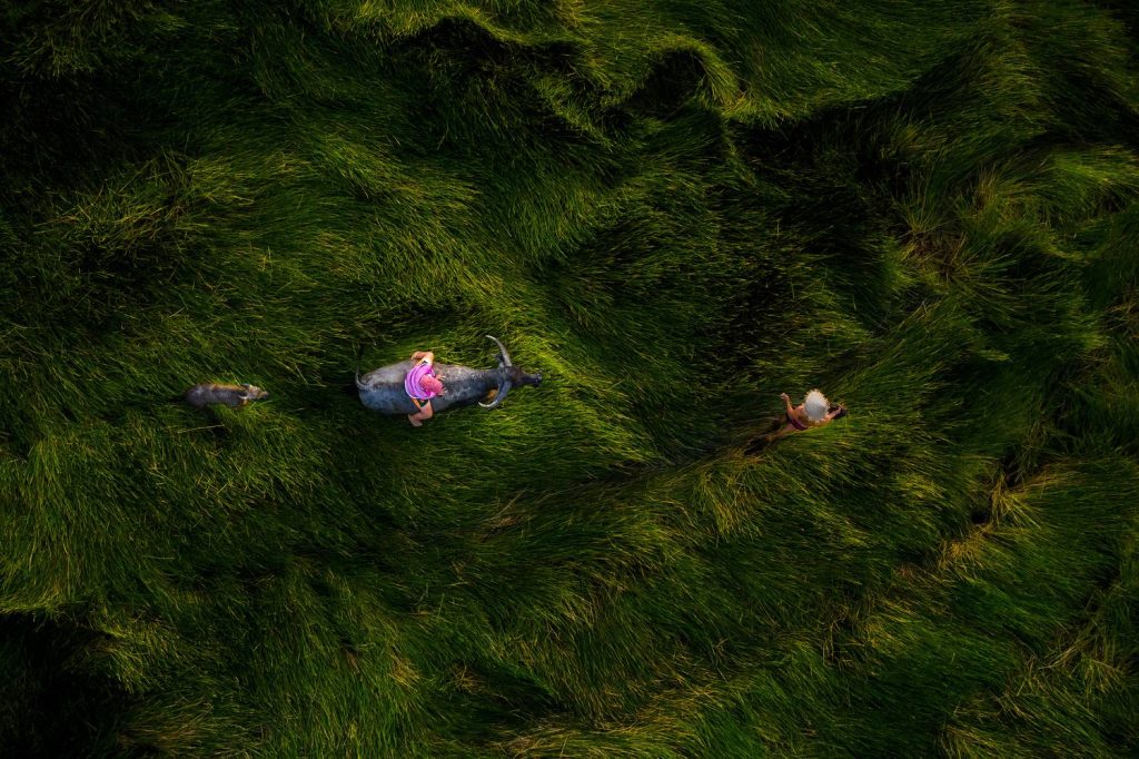 Tác phẩm Thu hoạch cỏ năng của nhiếp ảnh gia Phạm Huy Trung đạt giải nhất ở mục ảnh chụp trên cao (drone), đồng thời thắng giải chung cuộc 35AWARDS 2020 vừa công bố hôm 15/5.