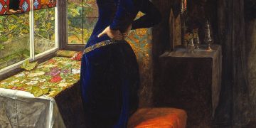 Đây là một bức tranh vô cùng hấp dẫn và đặc biệt. Tác phẩm “Woman with a Parasol in a Garden” (tạm dịch: người phụ nữ cầm dù trong vườn) được Renoir vẽ theo trường phái ấn tượng. Trong một khung cảnh không nhìn thấy đường chân trời, những bông hoa và cây bụi được tạo ra bằng những mảng màu nhỏ, đan xen liên tục vào nhau và vây xung quanh hai dáng người.
